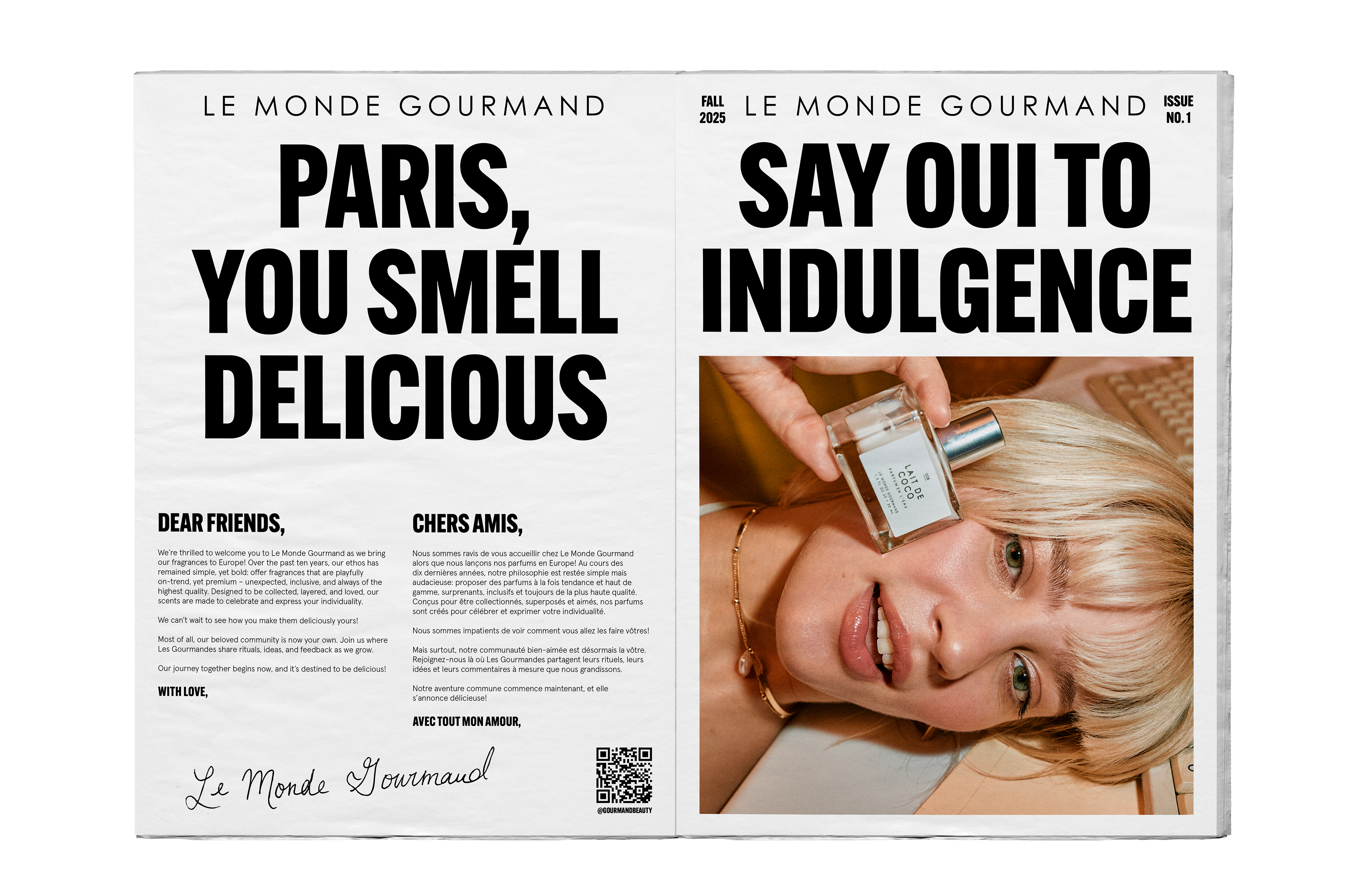 Recently, Le Monde Gourmand began its expansion into Sephora Europe — an exciting milestone for our rapidly growing brand. As part of this launch, LMG was invited to participate in the SEPHORiA beauty event in Paris, featured in the “Next Big Thing” section. To introduce the brand to our new European audience, we created a booth themed as a café and candy shop, highlighting our connection to food, sweets, and desserts. I developed the concept for a branded newspaper stand within the booth and created a custom bilingual Le Monde Gourmand newspaper announcing our international expansion to Paris and sharing storytelling around our brand ethos, voice, and personality. The booth was a major success, generating strong foot traffic, social engagement, and broader brand awareness.